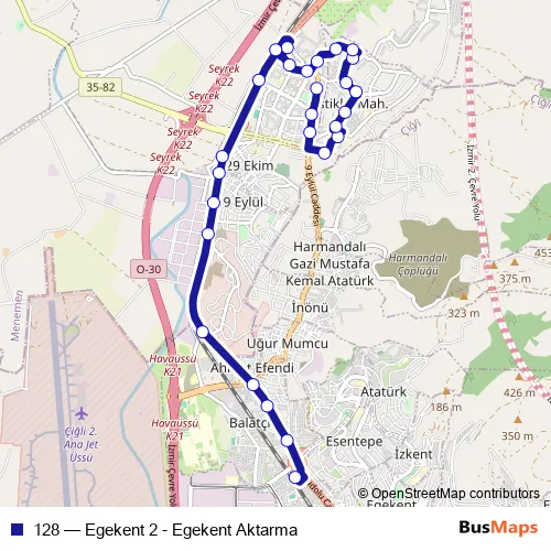 Click here to view the nearest 128 - Egekent 2 - Egekent Aktarma bus stop.