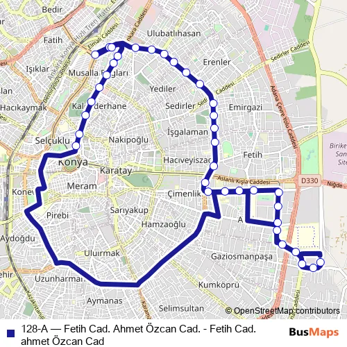 Bus 128-A - Fetih Cad. Ahmet Özcan Cad. - Fetih Cad.ahmet Özcan Cad in Karatay: Stops & Timetable