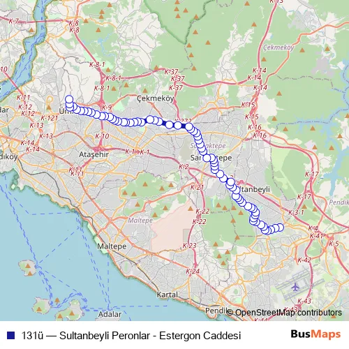 The first stop of the 131ü bus route is Sultanbeyli Peronlar and the last stop is Estergon Caddesi. 131ü (Sultanbeyli Peronlar - Estergon Caddesi) is operational during her gün.