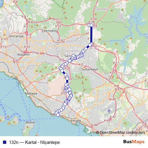 Bus 132n - Kartal - Nişantepe in Samandira: Stops & Timetable