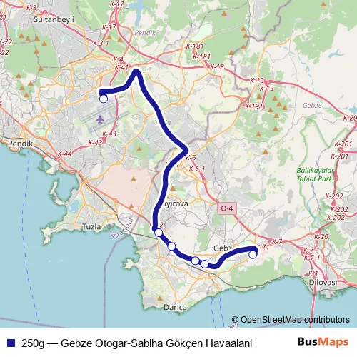 Bus 250g - Gebze Otogar-Sabiha Gökçen Havaalani: Full Schedule in Gebze
