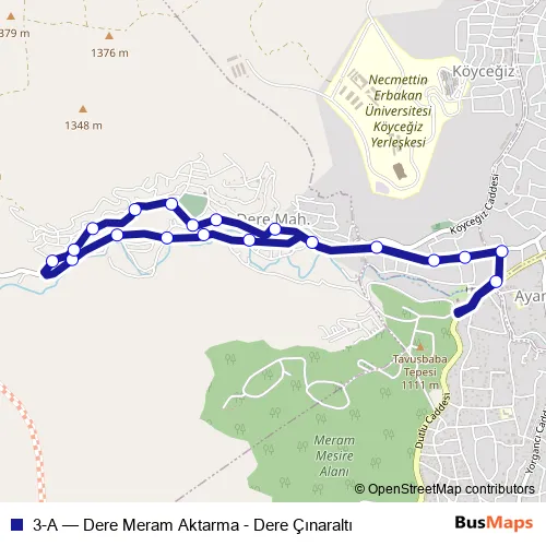 Bus 3-A - Dere Meram Aktarma - Dere Çınaraltı: Full Schedule in Konya