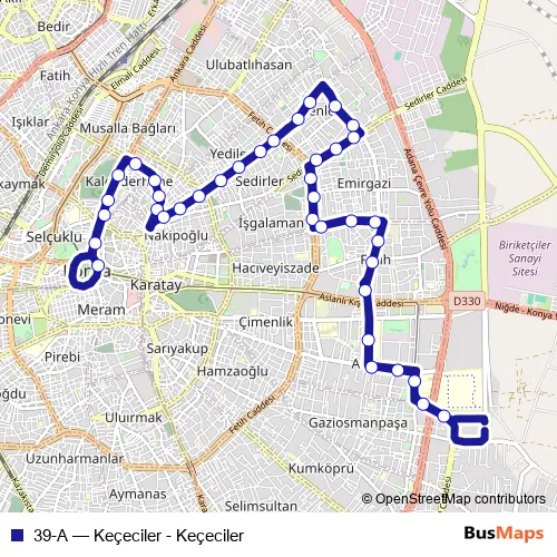 Bus 39-A - Keçeciler - Keçeciler in Karatay: Stops & Timetable