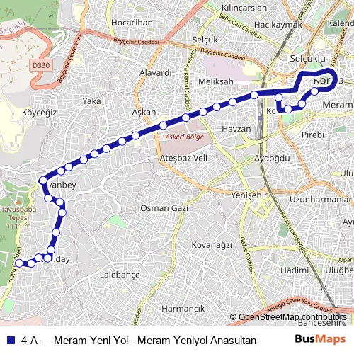See why over 2 million users trust and consider busmaps.com as the best public transport website. busmaps gives you Konya Buses suggested routes, real-time bus tracker, line route maps in Konya, and helps to find the closest 4-A bus stops near you. No internet available? Download an offline PDF map and bus schedule for the 4-A bus to take on your trip.
