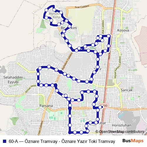 Click here to view the nearest 60-A - Öznare Tramvay - Öznare Yazır Toki Tramvay bus stop.