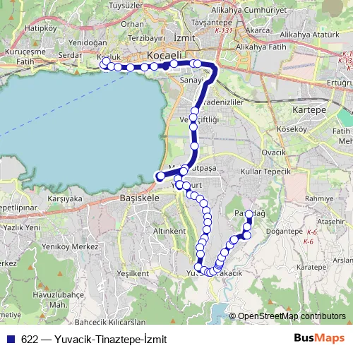See why over 2 million users trust and consider busmaps.com as the best public transport website. busmaps gives you Izmit Buses suggested routes, real-time bus tracker, line route maps in Izmit, and helps to find the closest 622 bus stops near you. No internet available? Download an offline PDF map and bus schedule for the 622 bus to take on your trip.