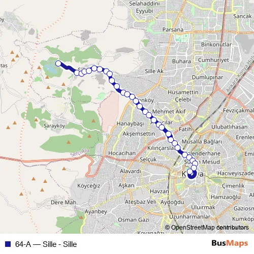 See why over 2 million users trust and consider busmaps.com as the best public transport website. busmaps gives you Konya Buses suggested routes, real-time bus tracker, line route maps in Konya, and helps to find the closest 64-A bus stops near you. No internet available? Download an offline PDF map and bus schedule for the 64-A bus to take on your trip.