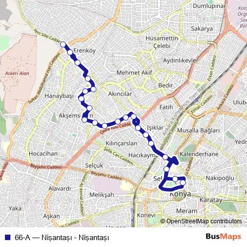 Bus 66-A - Nişantaşı - Nişantaşı: Full Schedule in Konya