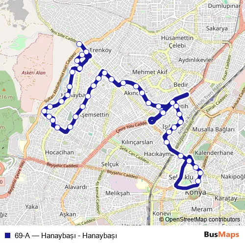See why over 2 million users trust and consider busmaps.com as the best public transport website. busmaps gives you Konya Buses suggested routes, real-time bus tracker, line route maps in Konya, and helps to find the closest 69-A bus stops near you. No internet available? Download an offline PDF map and bus schedule for the 69-A bus to take on your trip.