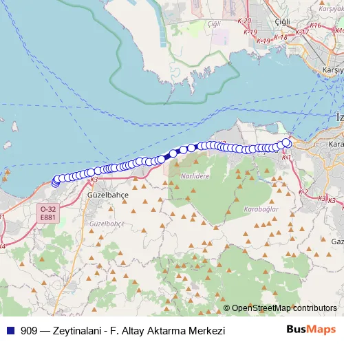 See why over 2 million users trust and consider busmaps.com as the best public transport website. busmaps gives you Izmir Buses suggested routes, real-time bus tracker, line route maps in Izmir, and helps to find the closest 909 bus stops near you. No internet available? Download an offline PDF map and bus schedule for the 909 bus to take on your trip.