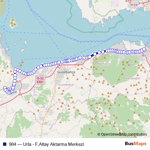 Click here to view the nearest 984 - Urla - F.Altay Aktarma Merkezi bus stop.