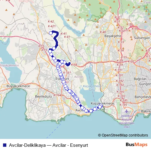 Bus Avcilar-Deliklikaya - Avcilar - Esenyurt in Bueyuekcekmece: Stops & Timetable
