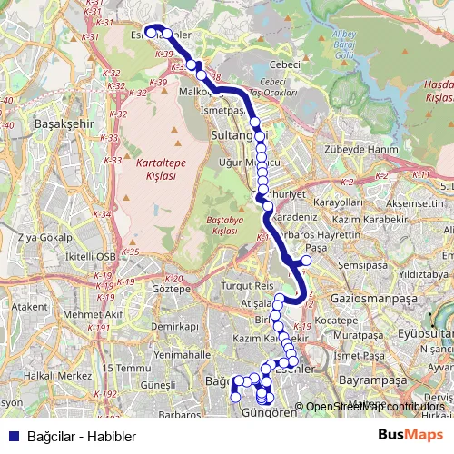 Additional information: Bağcilar - Habibler has 37 stops and the total trip duration for this route is approximately 48 minutes.