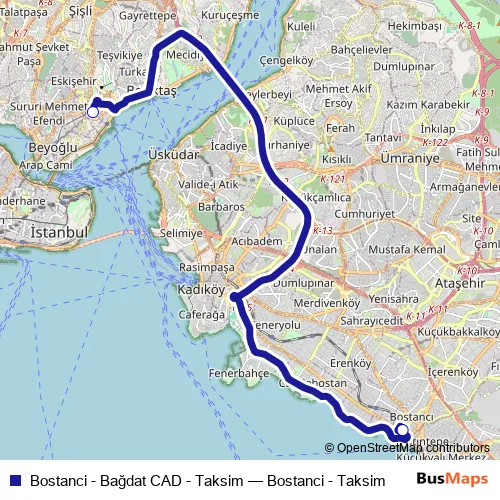 Bostanci - Bağdat CAD - Taksim bus Route Map