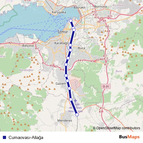 Additional information: Cumaovası-Aliağa has 12 stops and the total trip duration for this route is approximately 31 minutes.