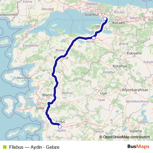Click here to view the nearest Flixbus - Aydin - Gebze bus stop.