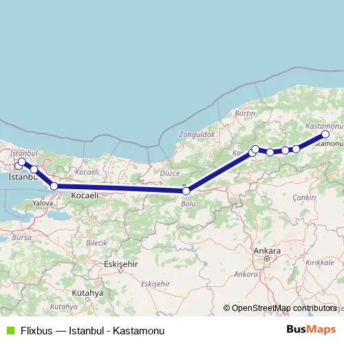 Click here to view the nearest Flixbus - Istanbul - Kastamonu bus stop.