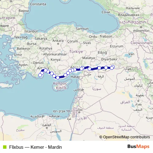 Click here to view the nearest Flixbus - Kemer - Mardin bus stop.
