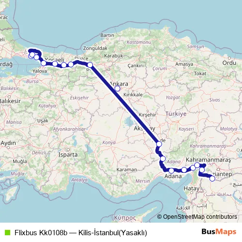 The first stop of the Flixbus Kk0108b bus route is İstanbul Esenler bus station and the last stop is