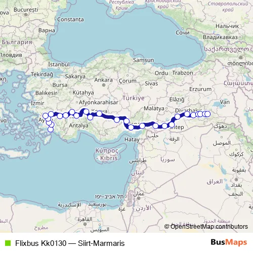 Click here to view the nearest Flixbus Kk0130 - Siirt-Marmaris bus stop.