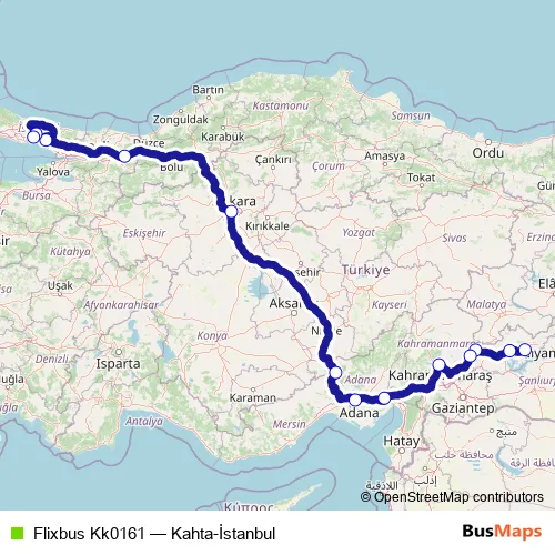 The first stop of the Flixbus Kk0161 bus route is Ankara bus station and the last stop is İstanbul Esenler bus station. Flixbus Kk0161 (Kahta-İstanbul) is operational during her gün.