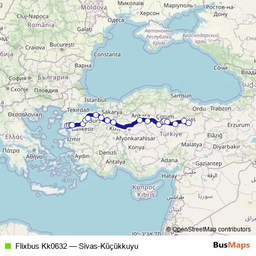Bus Flixbus Kk0632 - Sivas-Küçükkuyu: Full Schedule in Bozueyuek