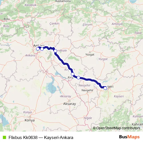 Click here to view the nearest Flixbus Kk0638 - Kayseri-Ankara bus stop.