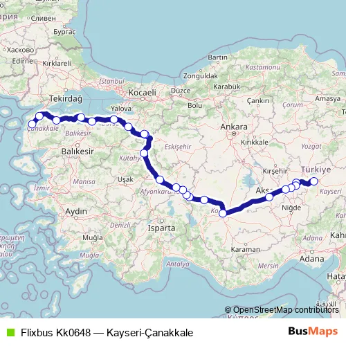Bus Flixbus Kk0648 - Kayseri-Çanakkale Schedule in Bozueyuek