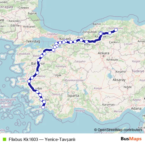 Click here to view the nearest Flixbus Kk1603 - Yenice-Tavşanlı bus stop.