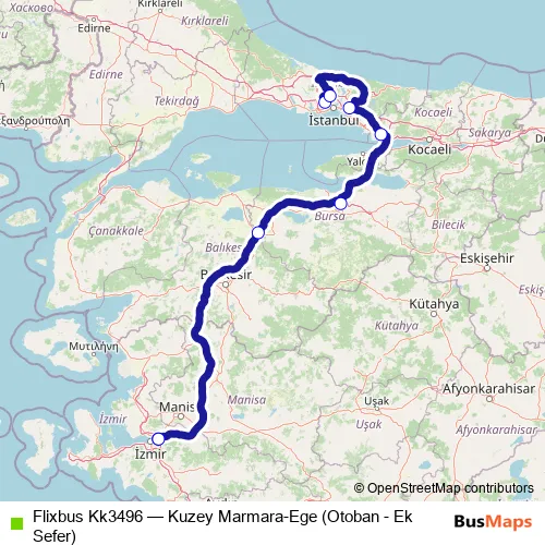 Click here to view the nearest Flixbus Kk3496 - Kuzey Marmara-Ege (Otoban - Ek Sefer) bus stop.