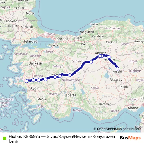 Click here to view the nearest Flixbus Kk3597a - Sivas/Kayseri/Nevşehir-Konya üzeri İzmir bus stop.
