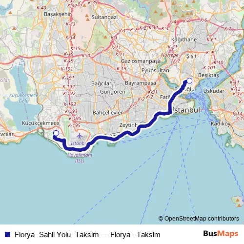 Florya -Sahil Yolu- Taksim bus Route Map
