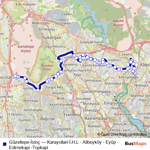 Click here to view the nearest Güzeltepe-İstoç - Karayollari-İ.H.L - Alibeyköy - Eyüp - Edirnekapi -Topkapi bus stop.