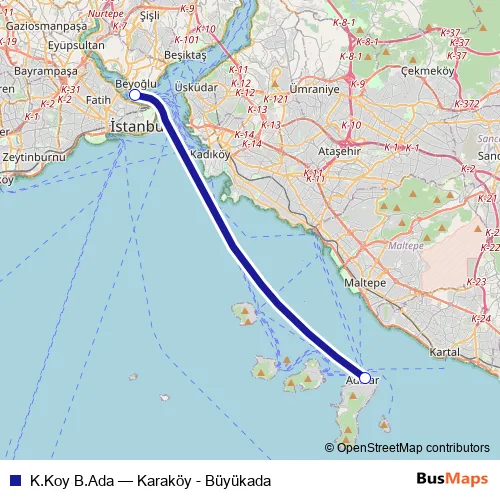 See why over 2 million users trust and consider busmaps.com as the best public transport website. busmaps gives you Adalar Ferries suggested routes, real-time bus tracker, line route maps in Adalar, and helps to find the closest K.Koy B.Ada ferry stops near you. No internet available? Download an offline PDF map and bus schedule for the K.Koy B.Ada ferry to take on your trip.