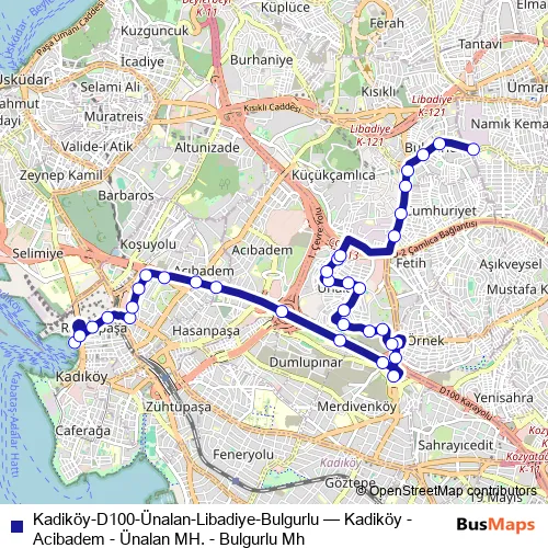 Kadiköy-D100-Ünalan-Libadiye-Bulgurlu bus Route Map