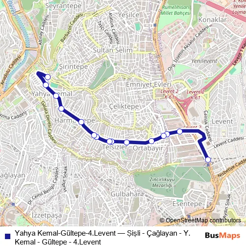 Yahya Kemal-Gültepe-4.Levent bus Route Map