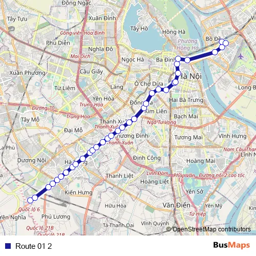 See why over 2 million users trust and consider busmaps.com as the best public transport website. busmaps gives you Hanoi Buses suggested routes, real-time bus tracker, line route maps in Hanoi, and helps to find the closest Route 01 2 bus stops near you. No internet available? Download an offline PDF map and bus schedule for the Route 01 2 bus to take on your trip.