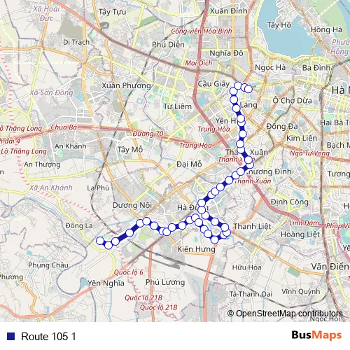 Services on the Route 105 1 bus stop at 21:03 on Thứ Hai, Thứ Ba, Thứ Tư, Thứ Năm, Thứ Sáu, Thứ Bảy, Chủ Nhật.