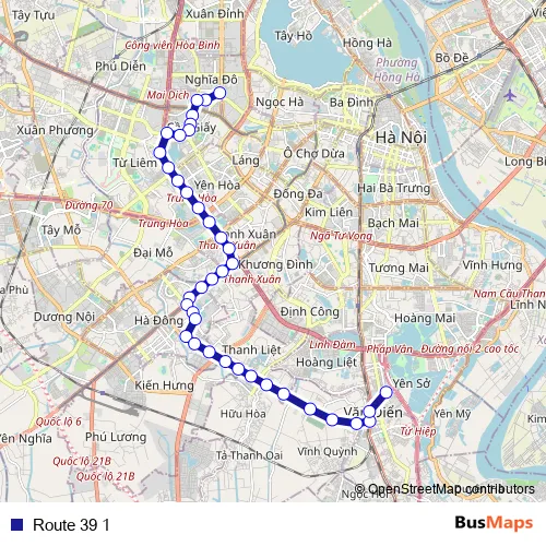 See why over 2 million users trust and consider busmaps.com as the best public transport website. busmaps gives you Cau Giay Buses suggested routes, real-time bus tracker, line route maps in Cau Giay, and helps to find the closest Route 39 1 bus stops near you. No internet available? Download an offline PDF map and bus schedule for the Route 39 1 bus to take on your trip.