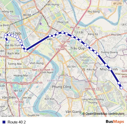 See why over 2 million users trust and consider busmaps.com as the best public transport website. busmaps gives you Hanoi Buses suggested routes, real-time bus tracker, line route maps in Hanoi, and helps to find the closest Route 40 2 bus stops near you. No internet available? Download an offline PDF map and bus schedule for the Route 40 2 bus to take on your trip.