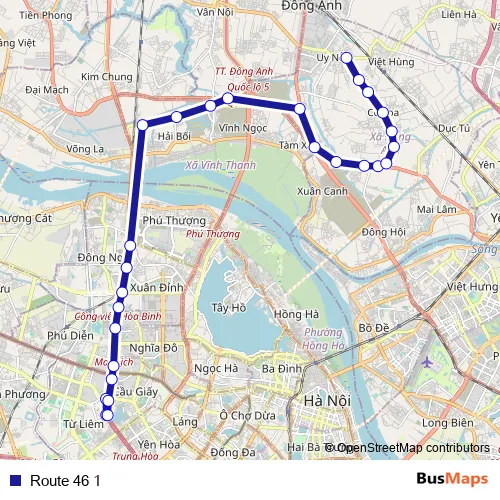 See why over 2 million users trust and consider busmaps.com as the best public transport website. busmaps gives you GJong Anh Buses suggested routes, real-time bus tracker, line route maps in GJong Anh, and helps to find the closest Route 46 1 bus stops near you. No internet available? Download an offline PDF map and bus schedule for the Route 46 1 bus to take on your trip.