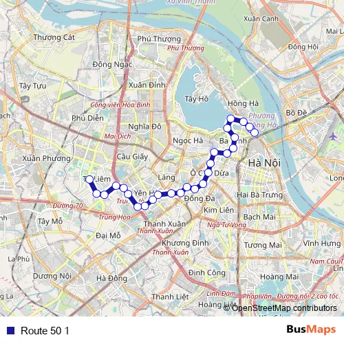 See why over 2 million users trust and consider busmaps.com as the best public transport website. busmaps gives you Hanoi Buses suggested routes, real-time bus tracker, line route maps in Hanoi, and helps to find the closest Route 50 1 bus stops near you. No internet available? Download an offline PDF map and bus schedule for the Route 50 1 bus to take on your trip.