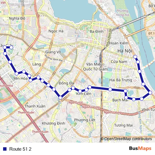 See why over 2 million users trust and consider busmaps.com as the best public transport website. busmaps gives you Hanoi Buses suggested routes, real-time bus tracker, line route maps in Hanoi, and helps to find the closest Route 51 2 bus stops near you. No internet available? Download an offline PDF map and bus schedule for the Route 51 2 bus to take on your trip.