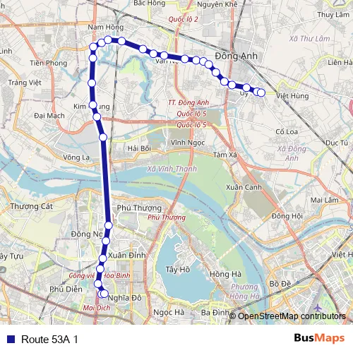 See why over 2 million users trust and consider busmaps.com as the best public transport website. busmaps gives you GJong Anh Buses suggested routes, real-time bus tracker, line route maps in GJong Anh, and helps to find the closest Route 53A 1 bus stops near you. No internet available? Download an offline PDF map and bus schedule for the Route 53A 1 bus to take on your trip.