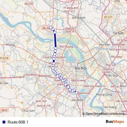See why over 2 million users trust and consider busmaps.com as the best public transport website. busmaps gives you Thanh Xuan Buses suggested routes, real-time bus tracker, line route maps in Thanh Xuan, and helps to find the closest Route 60B 1 bus stops near you. No internet available? Download an offline PDF map and bus schedule for the Route 60B 1 bus to take on your trip.