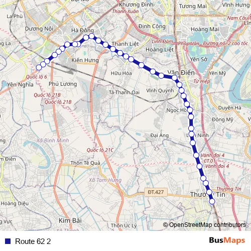 The first stop of the Route 62 2 bus route is Stop 06A 2 S21 and the last stop is Stop 21A 1 S31. Route 62 2 is operational during hàng ngày.