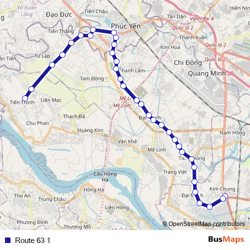 See why over 2 million users trust and consider busmaps.com as the best public transport website. busmaps gives you Me Linh Buses suggested routes, real-time bus tracker, line route maps in Me Linh, and helps to find the closest Route 63 1 bus stops near you. No internet available? Download an offline PDF map and bus schedule for the Route 63 1 bus to take on your trip.