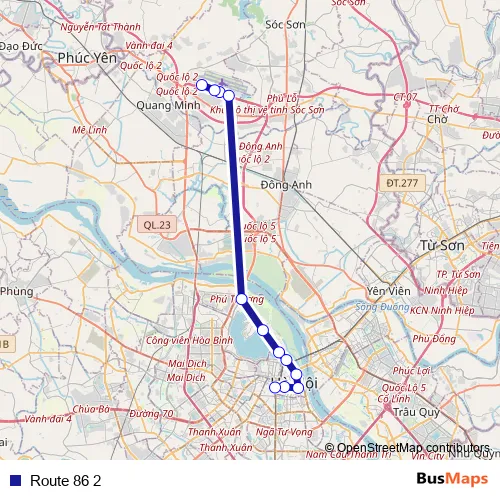See why over 2 million users trust and consider busmaps.com as the best public transport website. busmaps gives you Hanoi Buses suggested routes, real-time bus tracker, line route maps in Hanoi, and helps to find the closest Route 86 2 bus stops near you. No internet available? Download an offline PDF map and bus schedule for the Route 86 2 bus to take on your trip.
