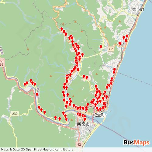 Transit map showing kihotown-chominbus routes and stops in Japan