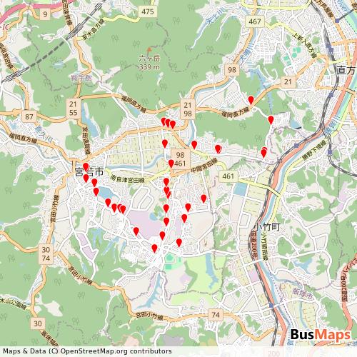 Transit map showing miyawakamunakataline routes and stops in Japan